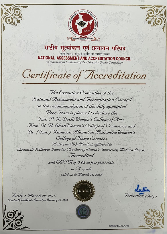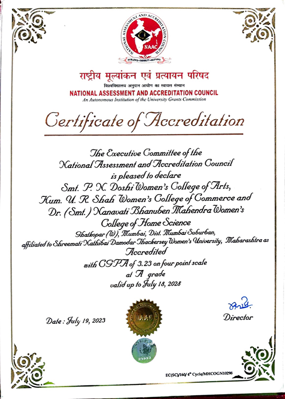 ACCREDITED “A” GRADE BY NAAC IN FOUR CONSECUTIVE CYCLES (CGPA 3.23)