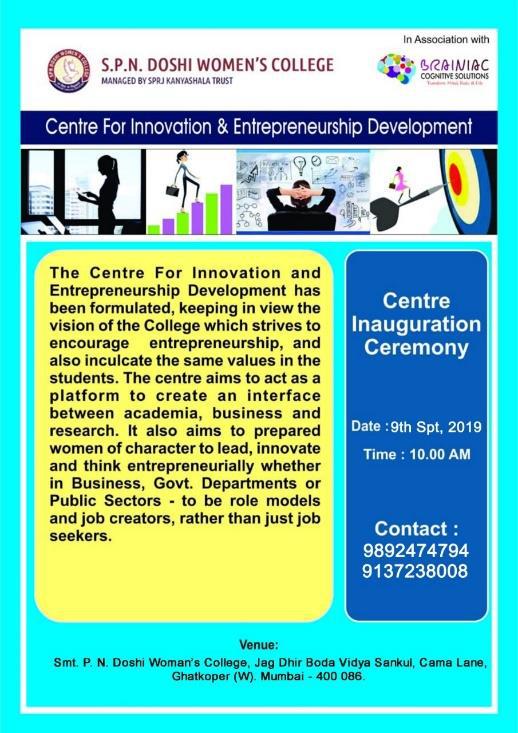 The Centre for Innovation & Entrepreneurship at Smt. P. N. Doshi Women’s College is dedicated to nurturing the entrepreneurial spirit among students and teacher, helping them transform their business ideas into reality. The centre encourages research ideas by providing resources and guidance, empower young entrepreneurs to establish a strong foundation before widening their ventures.